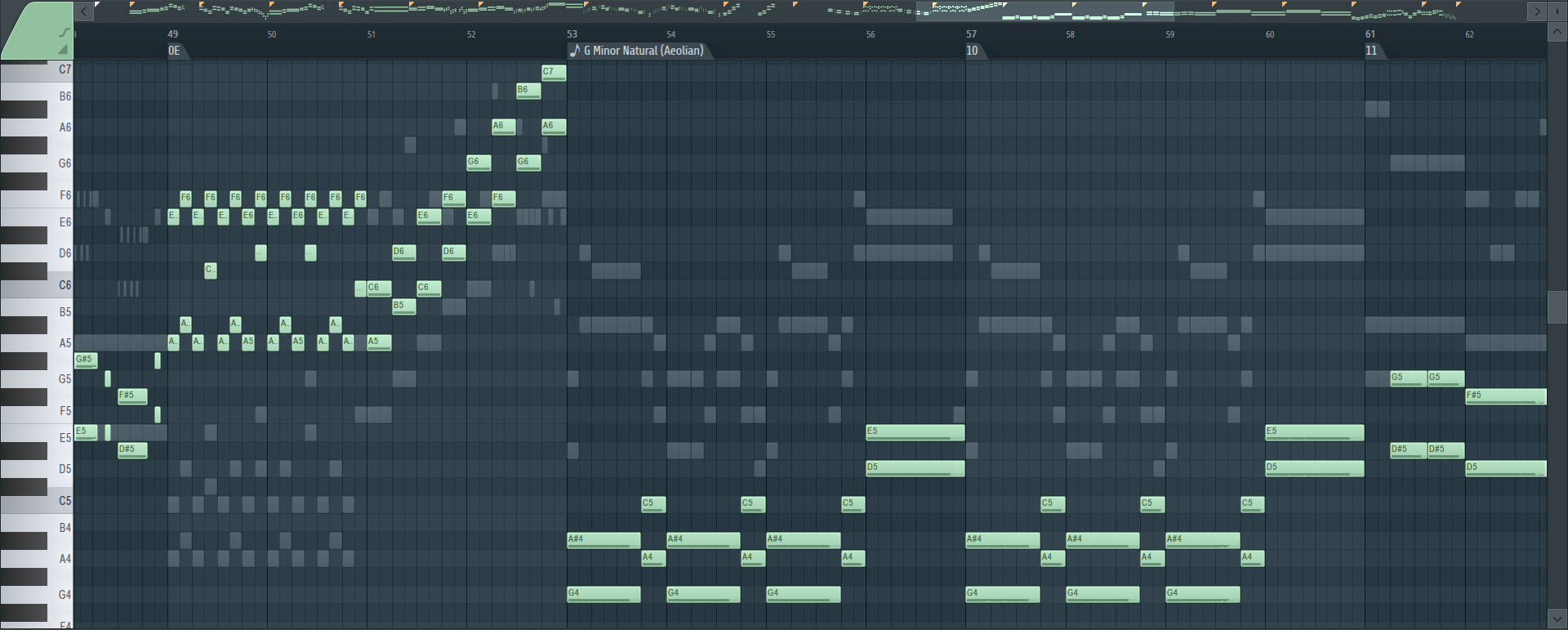 FF2 and FF3 are in A minor, whereas FF1 is in G minor... mostly. Of course the great Nobuo Uematsu wouldn't be constrained by something silly like scales or keys, which only complicated things for me. Creating a harmony isn't as simple as just playing the same melody two steps apart up or down, especially when there are notes which are not part of the scale the song is supposed to be on. So that was quite the headache, in particular during the "horror movie" parts of FF2, because it's supposed to sound dissonant, I think. I may not yet be able to tell what note I'm hearing just by listening to it (I'd say that's an advanced skill for a musician to have) but still, my ears are quite sensitive to dissonance, and in general to when something just doesn't sound right in a piece of music. Getting FF2 to sound acceptable to me was difficult. And then there are the backing strings: sometimes they play the same notes as the trumpets, and sometimes they play something different. It's all about experimenting in the piano roll (I did most of the composing on FL Studio, as usual), and I'd say they were the hardest thing to get right. There's even a section in FF1 where they swap roles with the trumpets because it just worked better that way.