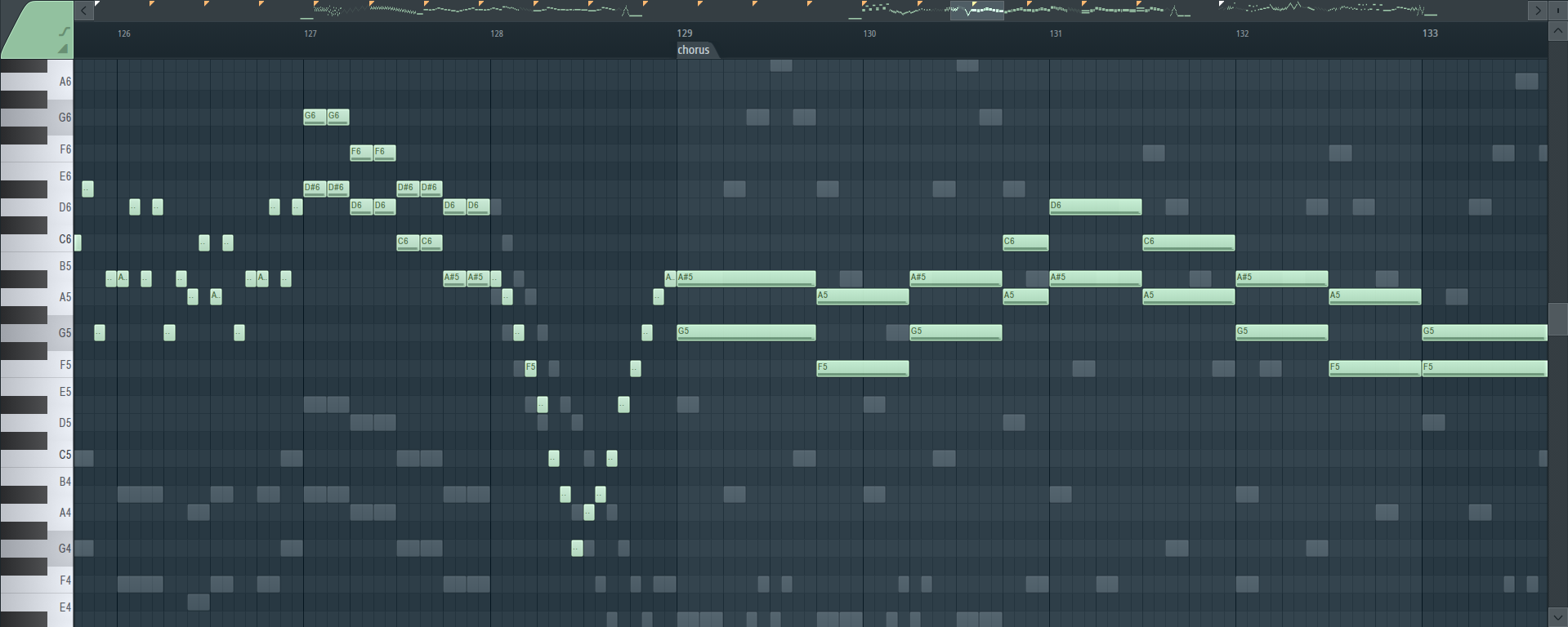 I based this on a MIDI by one "tom kim". If you haven't heard of him, it might be because I downloaded it from an obscure Japanese webpage from the early 2000s (there's a bit of a pattern here, huh?). My reasoning was that this would simplify the compositional process: the MIDI file in question is pretty spot-on to begin with, so I could import it into FL Studio and modify it to my heart's content. Like I said, I kept the first minute intact, but after that I got to work. Taking inspiration from S.S.H., I made the riffs far more complex, and also deleted the original melodies / solos and instead composed my own. I really can't say enough good things about FL Studio's piano roll--its "lock to scale" function is a godsend that makes the process of coming up with melodies incredibly fun, and for a fledgling musician like myself, it's catnip.